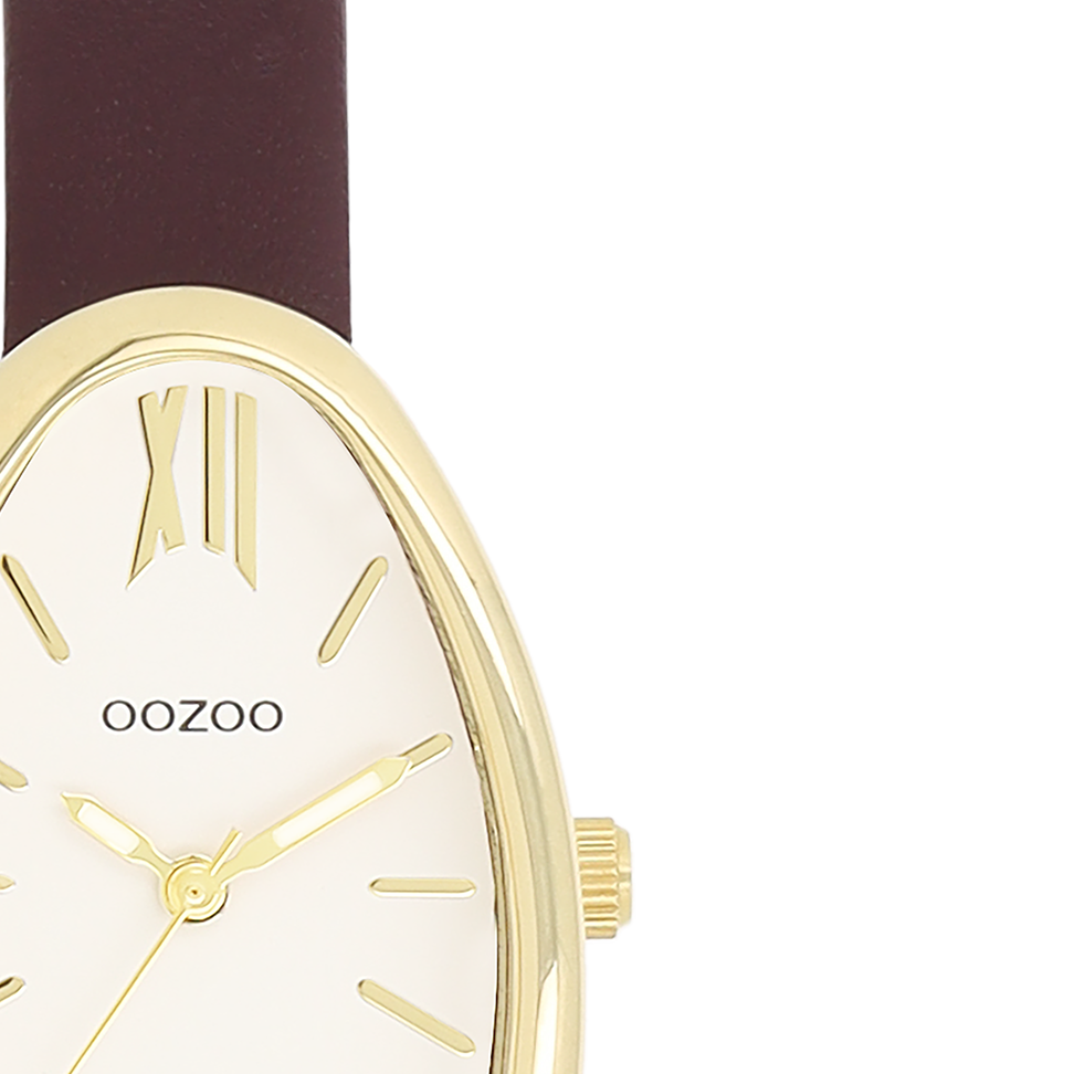 Gold coloured OOZOO watch with fig red leather strap - C11635