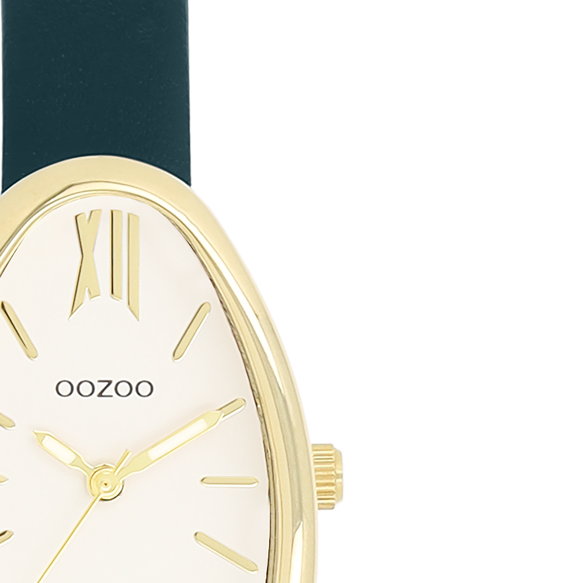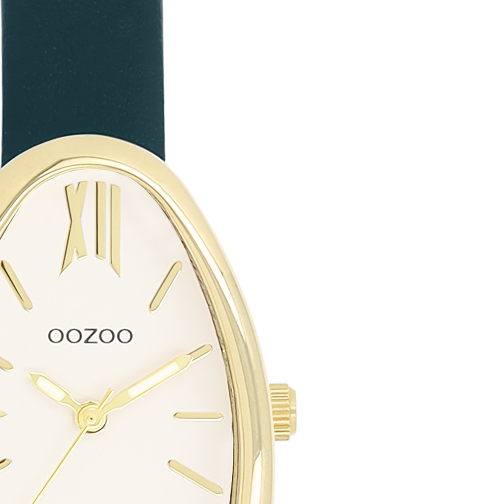 Gold coloured OOZOO watch with dark green leather strap - C11636