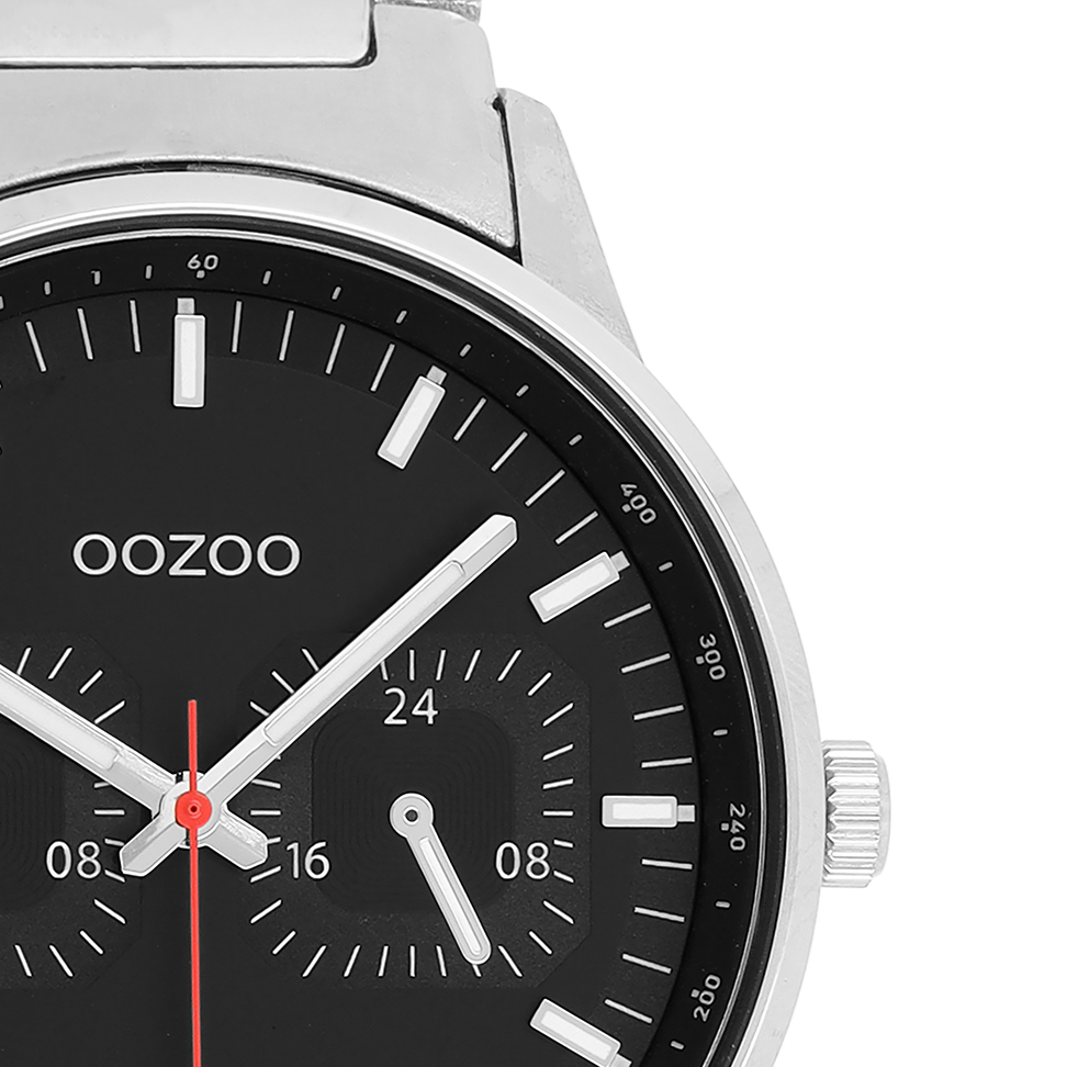 Stand out with this beautiful round gents design from the trendy OOZOO Timepieces collection. The C11622 has a silver coloured stainless steel bracelet and 42 mm silver coloured metal watch case. You are making quite the fashion statement with this black chrono dial, silver coloured/white stripes digits and silver coloured/red hands. This essential watch for your wardrobe has a mineral glass, stainless steel backplate and is nickel safe. This watch has a 2ATM Japanese movement and is covered by a 2 year warranty (see section 3 of our Refund, shipping & warranty policy).