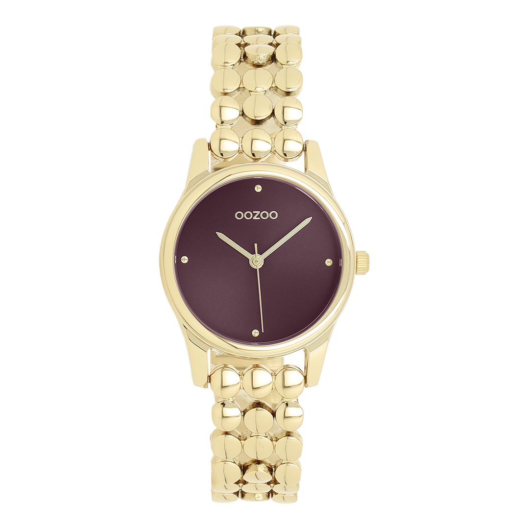 Stand out with this beautiful round ladies design from the trendy OOZOO Timepieces collection. The C11633 has a shiny gold coloured dot link bracelet and 28 mm gold coloured metal watch case. You are making quite the fashion statement with this fig red sunray dial, gold coloured dots digits and matching hands. This essential watch for your wardrobe has a mineral glass, stainless steel backplate and is nickel safe. This watch has a 2ATM Japanese movement and is covered by a 2 year warranty (see section 3 of our Refund, shipping & warranty policy).