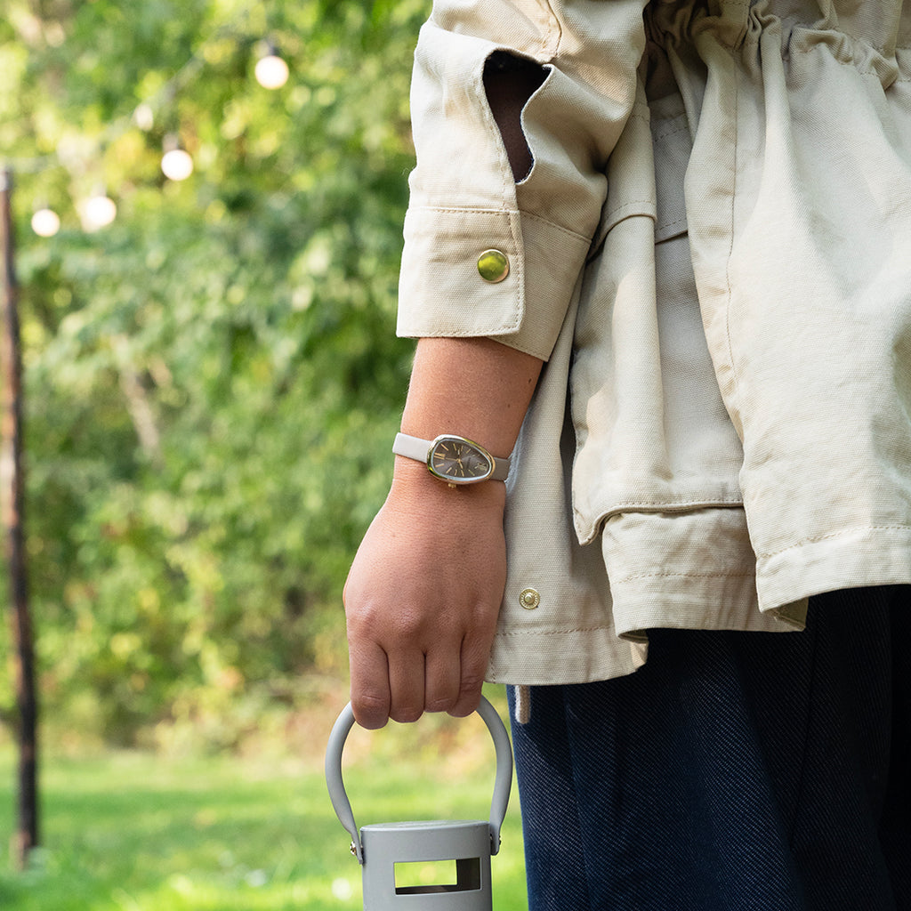 Stand out with this beautiful egg-shape ladies design from the trendy OOZOO Timepieces collection. The C11637 has a taupe leather strap and 31x22 mm gold coloured metal watch case. You are making quite the fashion statement with this taupe sunray dial, gold coloured stripes and Roman numerals digits and matching hands. This essential watch for your wardrobe has a mineral glass, stainless steel backplate and is nickel safe. This watch has a 2ATM Japanese movement and is covered by a 2 year warranty (see section 3 of our Refund, shipping & warranty policy).