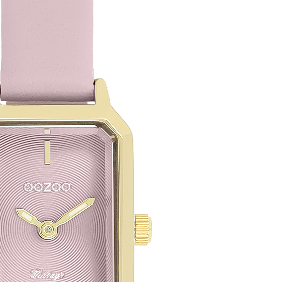 The classic look stays key in this trendy series and therefore, this rectangular OOZOO vintage design with a playful wink is the season must-have! This ladies watch is the perfect combination of fashion and comfort with its 22x19 mm gold coloured metal watch case and pink circle pattern dial. The pink leather strap makes this watch a trendy accessory, which you can wear every day. The dial has gold coloured stripes digits and matching hands. The C20452 adds the sparkle to your outfit. The mineral glass lays in a 9,5 mm slim metal watch case with IP-plating. This design has a stainless steel backplate and is nickel safe. This watch has a 2ATM Japanese movement and is covered by a 2 year warranty (see section 3 of our Refund, shipping & warranty policy).