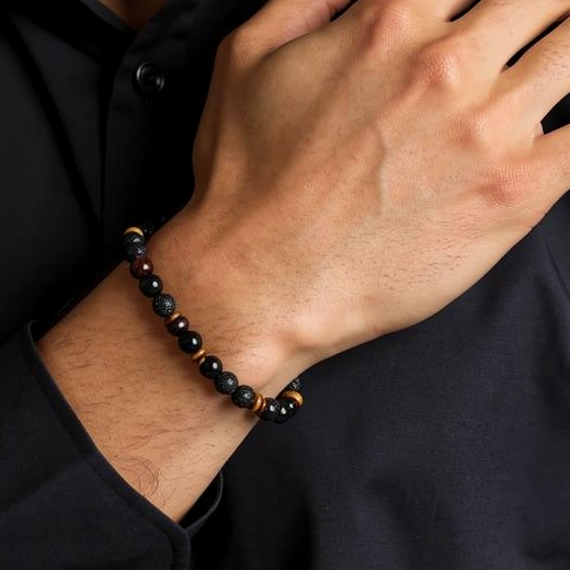 Yellow/black tiger eye and vulcano bracelet