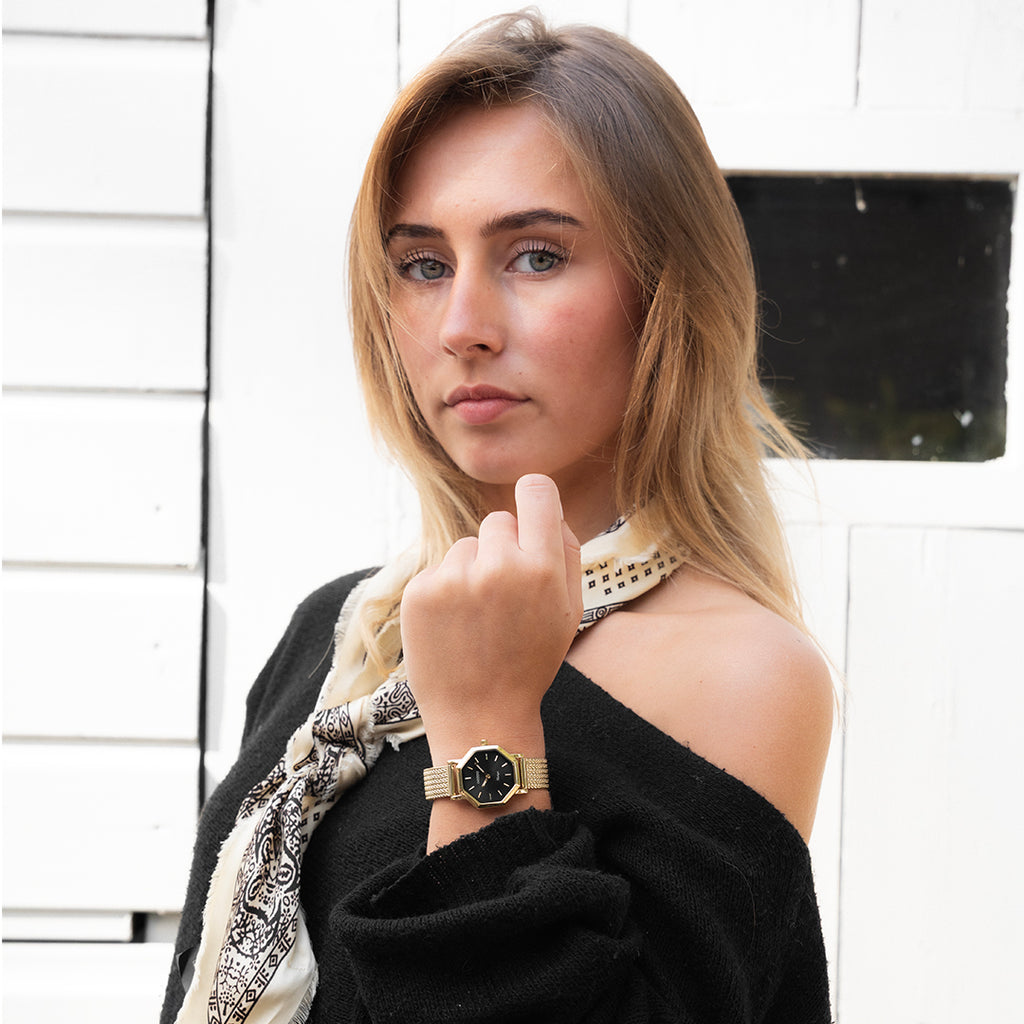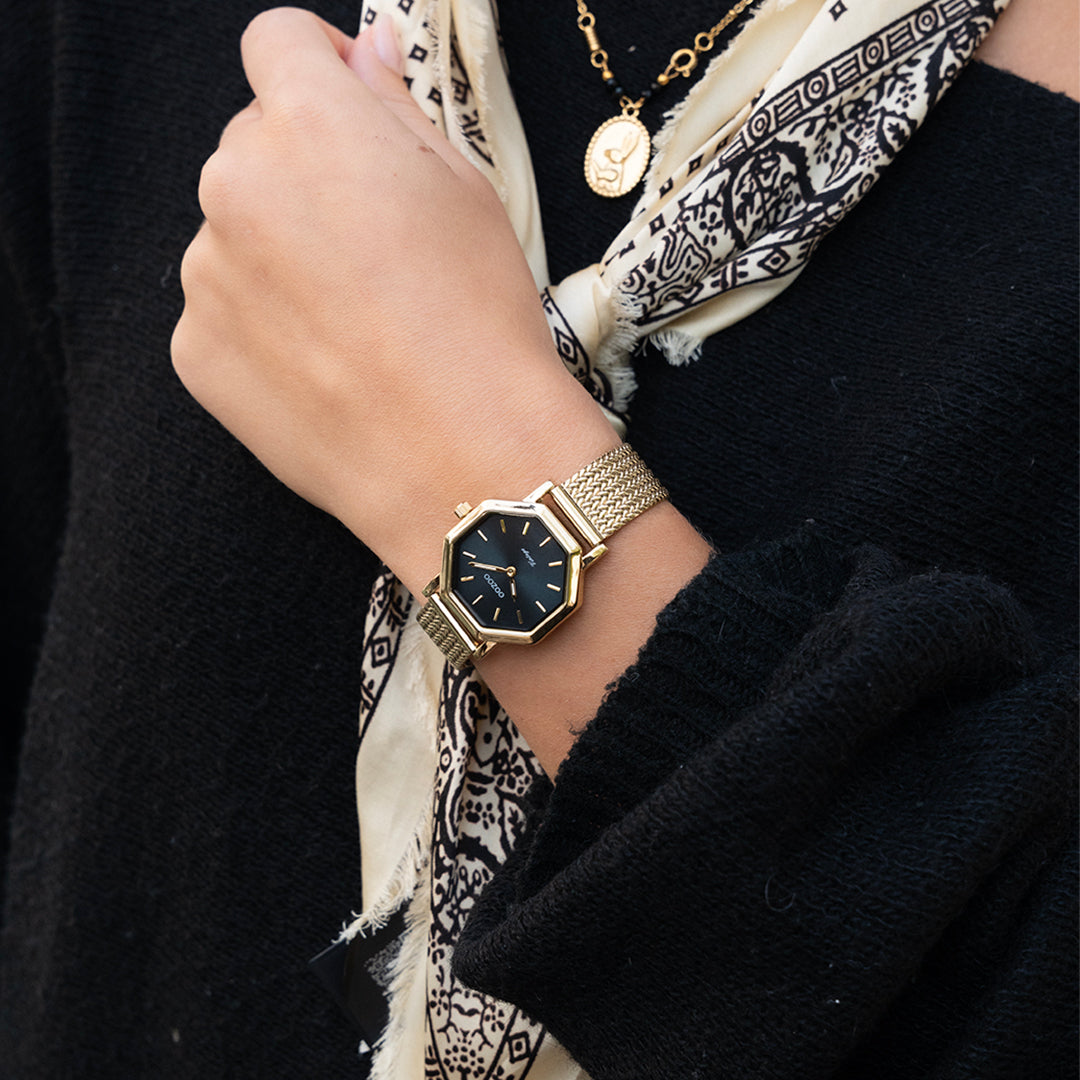 The classic look stays key in this trendy series and therefore, this octagon OOZOO vintage design with a playful wink is the season must-have! This ladies watch is the perfect combination of fashion and comfort with its 28x28 mm gold coloured metal watch case and dark green sunray dial. The gold coloured metal v-mesh bracelet makes this watch a trendy accessory, which you can wear every day. The dial has gold coloured stripes digits and matching hands. The C20438 adds the sparkle to your outfit. The mineral glass lays in a mm slim metal watch case with IP-plating. This design has a stainless steel backplate and is nickel safe. This watch has a 2ATM Japanese movement and is covered by a 2 year warranty (see section 3 of our Refund, shipping & warranty policy).