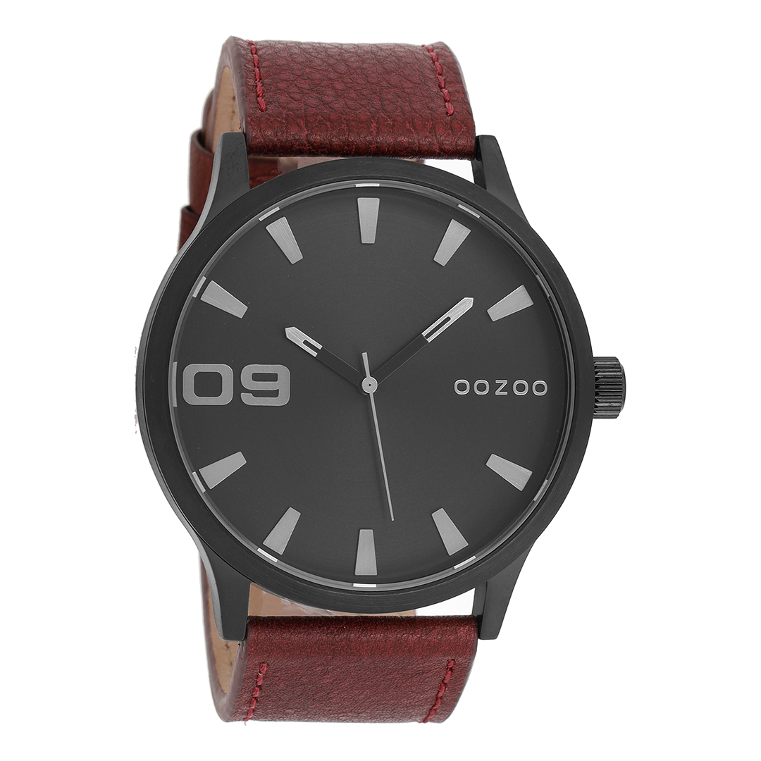 Black OOZOO watch with brown leather strap - C8532