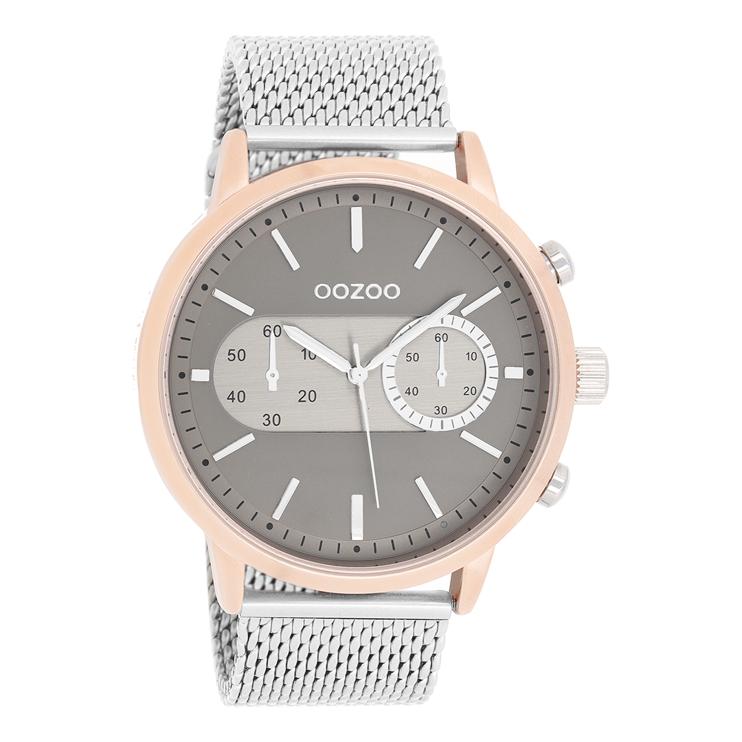 Rose gold coloured OOZOO watch with silver coloured metal mesh bracelet - C9072