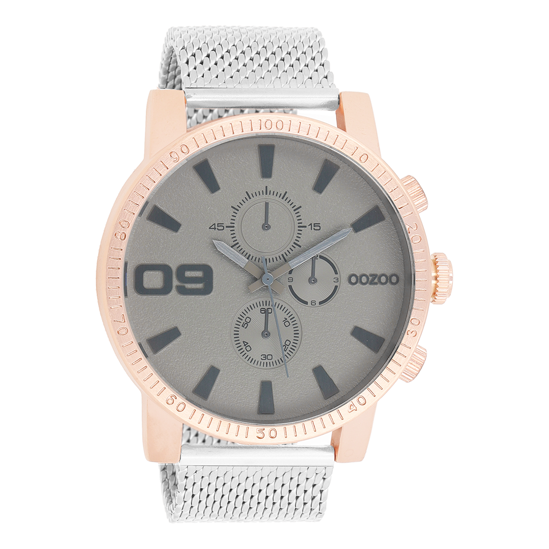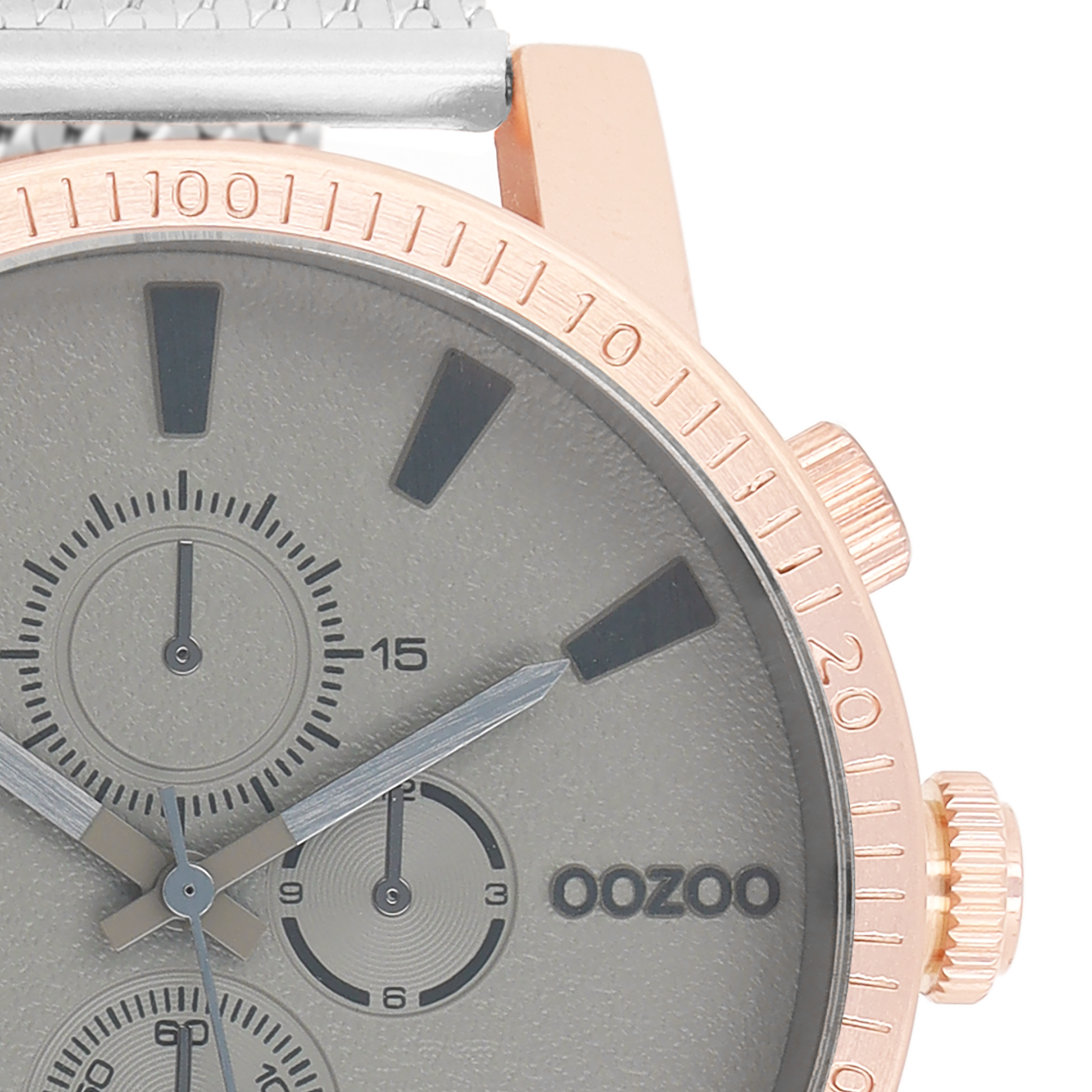 Rose gold coloured OOZOO watch with silver coloured metal mesh bracelet - C9437